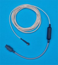 This Plethysmograph sensor from ADI instruments (MLT1020) uses an infrared photoelectric sensor to detect changes in tissue blood volume. The Plethysmograph sensor directly plugs into 1 of the 6 Universal auto-configuring Active3 AUX inputs. Click here for the .pdf specifications of the plethysmograph. |
